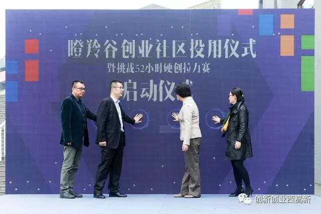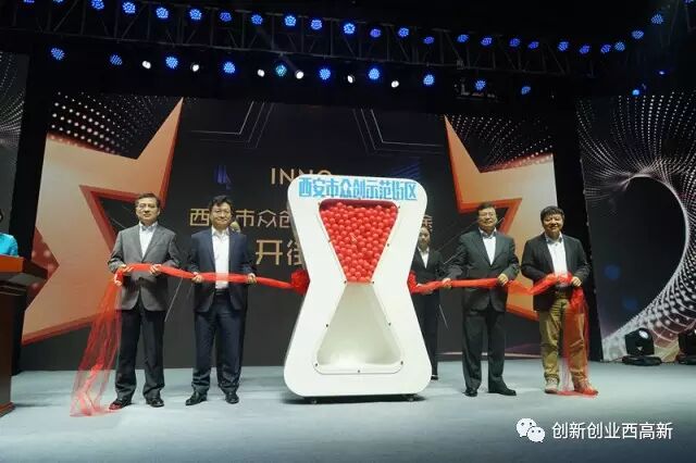 市委常委、高新区管委会书记赵红专与牛文文董事长、杨宁会长、胡小龙董事长共同拉动启动装置,宣布西安市众创示范街区正式开街;
