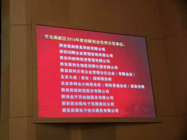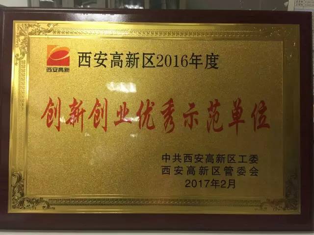 荣获“西安高新区2016创新创业优秀示范单位”称号