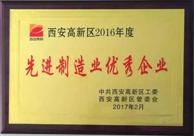 同时被评为“西安高新区2016先进制造业优秀企业”