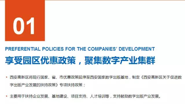 西安国家数字出版基地聚集国内外数字出版龙头企业,通盘整合数字出版产权内容、编辑、印刷、发行、技术、终端、广告等各环节战略性产业资源,集中打造以高新技术为支撑,数字内容为核心,创新示范为手段的数字出版产业,形成数字应用、文化创意、数字出版、数字教育四大产业板块为核心的产业聚集区,建成完整产业链。目前项目招商已经正式启动。