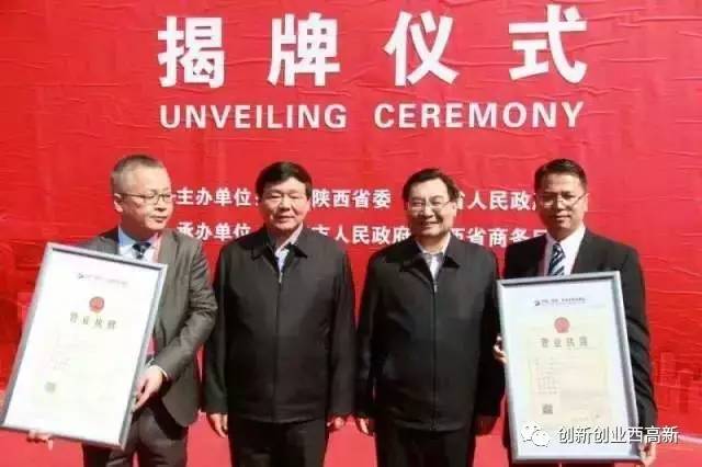 揭牌仪式上,毛万春宣读了国务院关于同意设立中国(陕西)自由贸易试验区的批复,胡和平讲话,娄勤俭、胡和平共同为自贸试验区3个管理机构揭牌,并为新注册入区企业颁发营业执照。