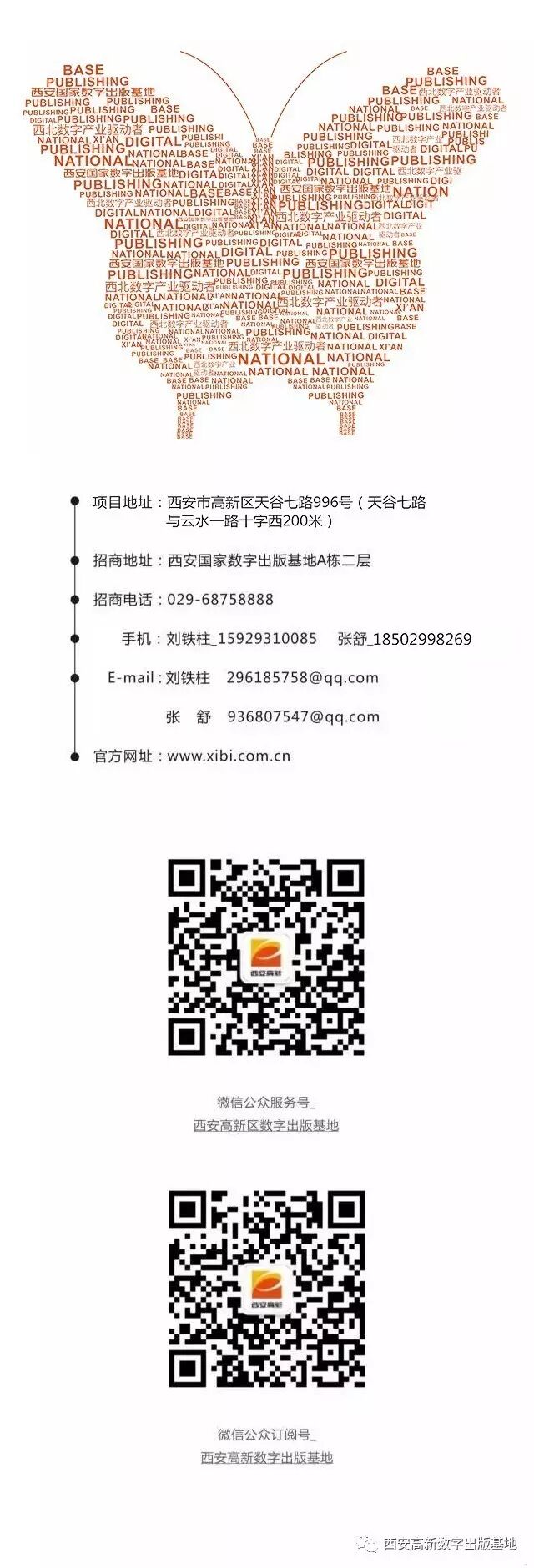 西安国家数字出版基地作为国家新闻出版总署批准的12个数字出版基地之一,西部首个国家级数字出版基地,以打造西北数字出版产业的驱动者为己任,以数字应用、文化创意、数字出版、数字教育四大产业板块为核心建成产业聚集区,完整产业链,通过辐射带动作用,引领陕西乃至西部地区数字出版产业发展,最终形成一个国家战略部署、地方组合特色、产业创新发展的国家级数字出版产业示范高地。简单来说就是,我们是要成为西部数字产业圆心的基地。