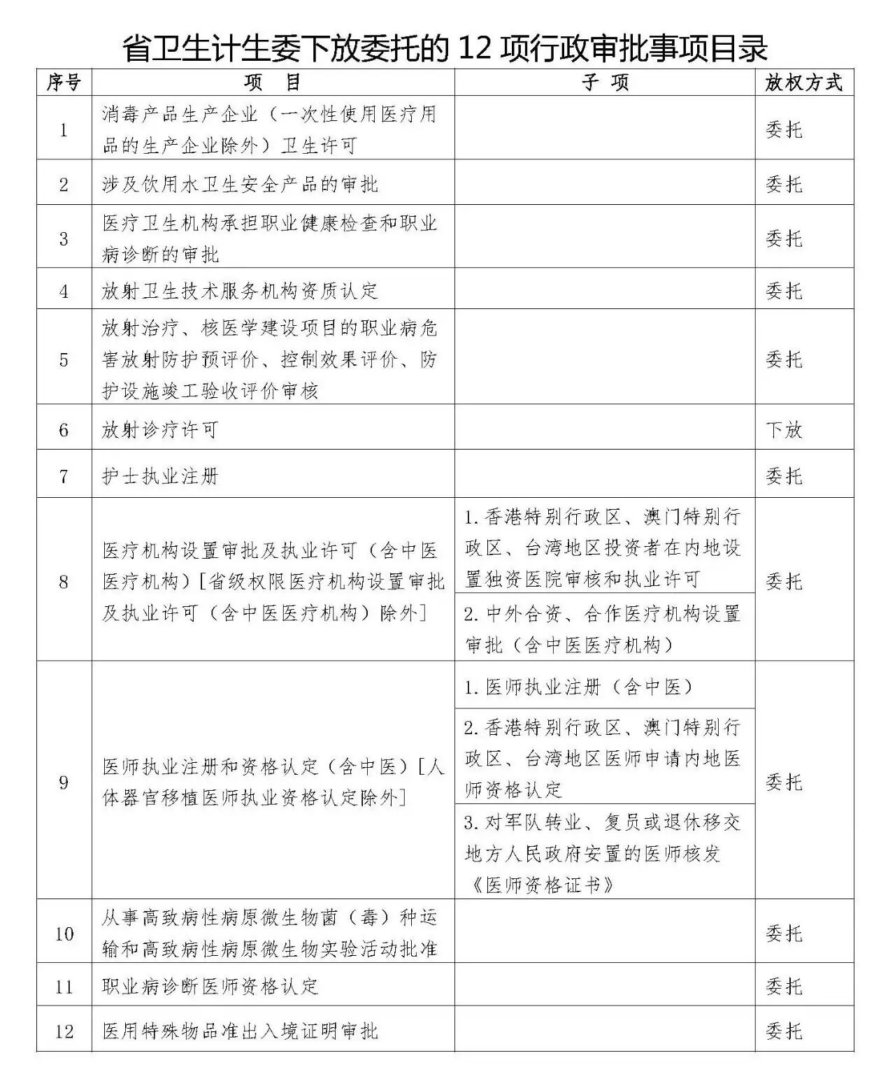 一、下放委托的行政审批事项(共12项)