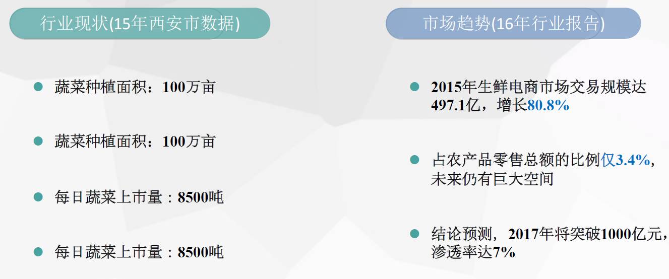 目前为人所知的有天天国鲜和美菜网,美菜网更是已经完成20亿的D轮融资,如何在这样竞争压力比较大的市场下寻找到自己独特的模式,这也是自由搭创始人欧阳成龙一直在思考的问题。经过分析他们发现,正是因为美菜网规模比较大,仓储系统也比较大,一个城市大型的仓储数量毕竟有限,很难解决“最后一公里”的问题,在保持新鲜、减少损耗方面还是有所欠缺。自由搭是一个专注于生鲜电商的平台,致力于解决“最后一公里”的问题。
